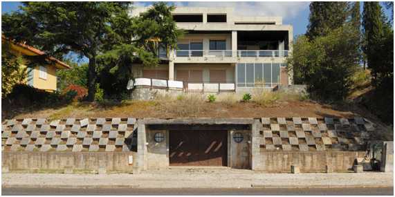 Colocada numa cota de terreno sobrelevada, a Casa ergue-se em relação ao nível da rua, mas ergue-se ao contrário, de cima para baixo, como uma árvore invertida: as raízes, que estão no alto, são representadas pelos respiradores e chaminés no terraço e as flores estão geometricamente “implantadas” no pavimento em mosaico na entrada do jardim. Desta maneira explicar-se-á a enigmática função duma chaminé fingida no terraço, que não tem qualquer ligação com o interior da casa,