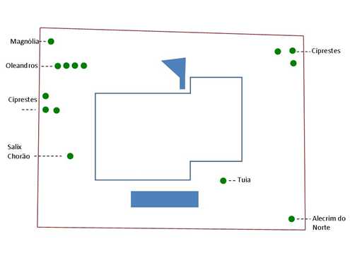 19A. Esquema a partir da Planta geral da Obra Rua de Alcolena, Lote 149, autografada por António Varela com indicação das plantas, árvores e elementos decorativos do jardim. Desenho de Barbara Aniello.